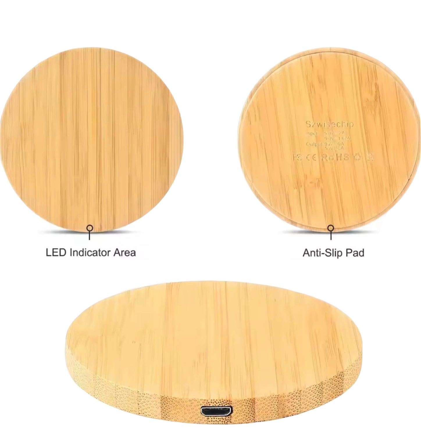 Bamboe Draadloze Oplader 10W โ Qi Wireless Charging Pad voor iPhone & Samsung